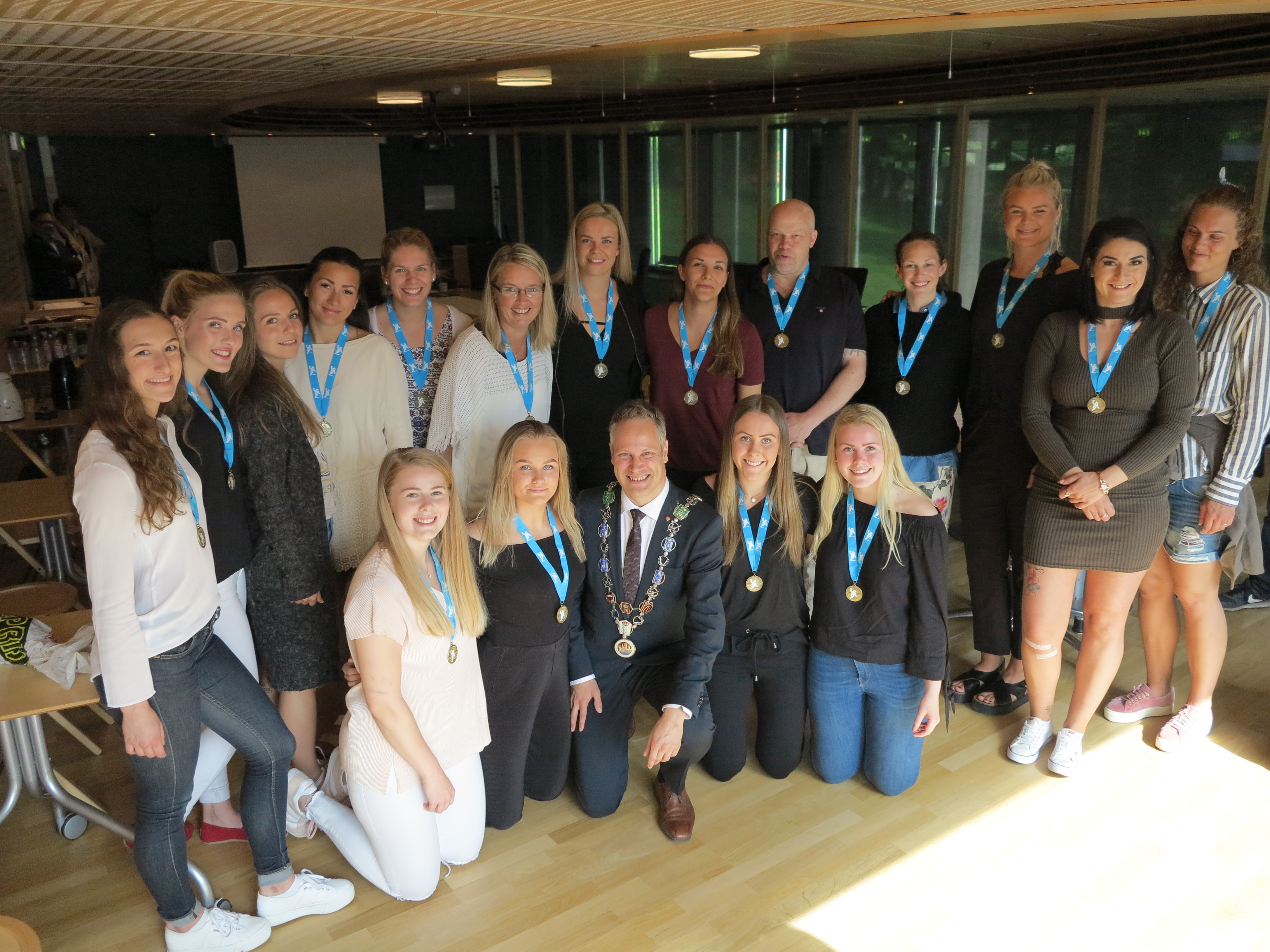 Ordfører Jon-Ivar Nygård delte ut opprykks medalje til våre jenter!